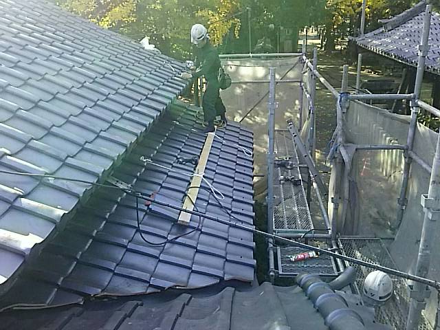 また 大屋根の棟は20メートル以上ある棟を、真っ直ぐにに熨斗瓦を積んで行くのは難しいです!