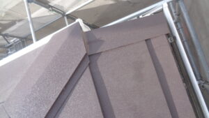 まず初めに、既設の棟包みをめくり屋根をフラットにします。