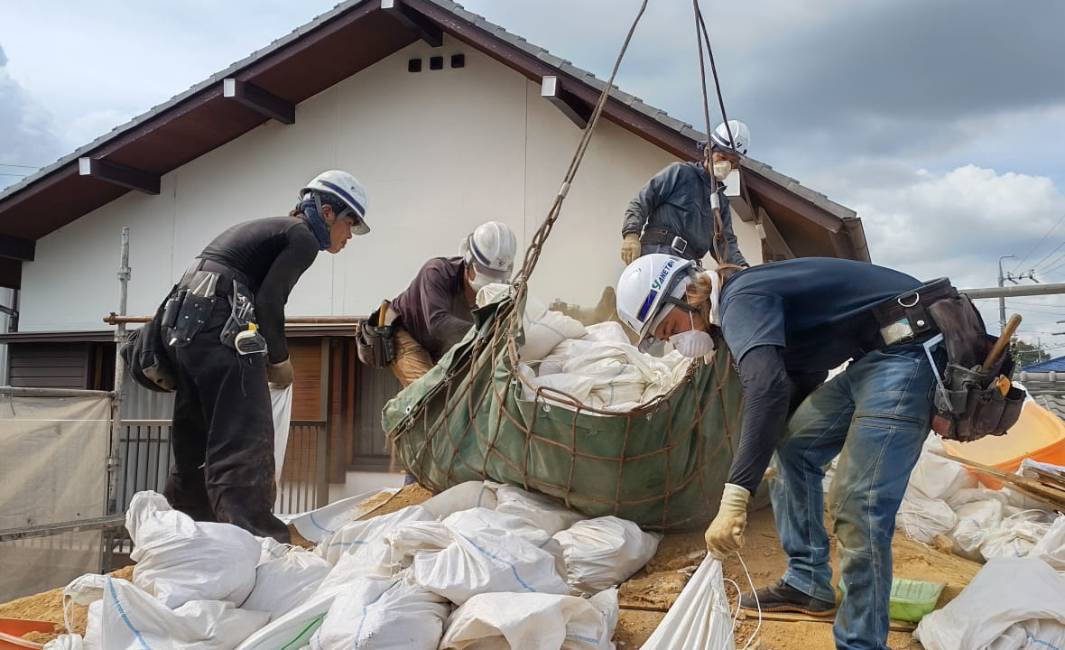 葺き替え工事ですので、まずは既設の瓦屋根を撤去・解体することから始まります。すでに割れやヒビがはいっている瓦があるため、慎重に瓦を外していきます。